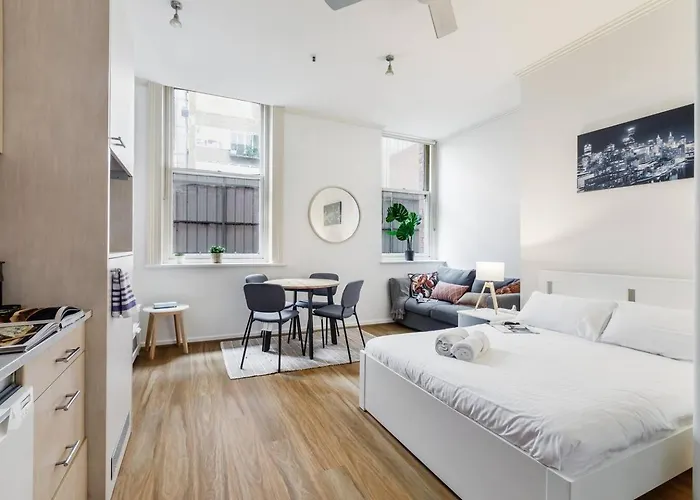 Das 54 m² große Deste Studio - A Modern Boutique Lifestyle Suite Melbourne City befindet sich im Stadtviertel Melbourne CBD von Melbourne City, weniger als 6 Minuten zu Fuß von der St. Pauls Kathedrale entfernt.